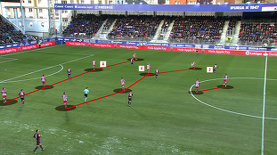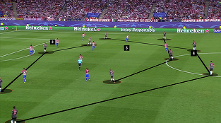 Atletico Madrid ramane fidela filosofiei de a forma o linie de 3 pe asezarea defensive intr-un sistem 4-4-2.