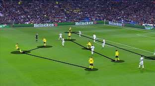Borussia Dortmund a schimbat si ea foarte des asezarile cu Thomas Tuchel pe banca, insa in Uefa Champions League gruparea germana a preferat si ea un 4-3-3 la meciurile contra lui Real Madrid.