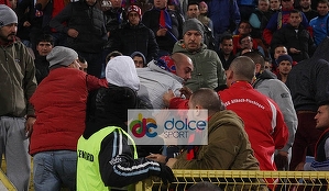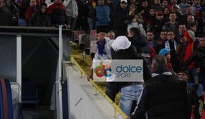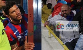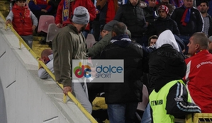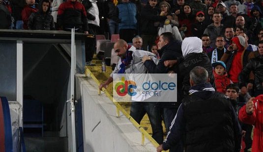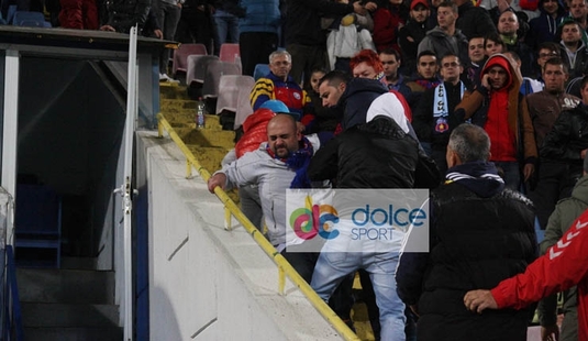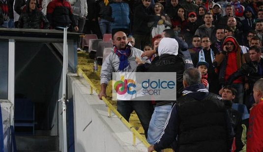 Fotoreporterul www.dolcesport.ro prezent la partida Steaua - U Cluj 4-1 a surprins imagini incredibile la pauza meciului. Un fan stelist a fost calcat in picioare de alti suporteri ai campioanei, pentru ca l-a injurat pe Cristi Tanase