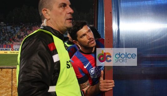 1. Arbitrul Alexandru Tudor pune capat primei reprize. Jucatorii se indreapta spre vestiare. Cristi Tanase are un conflict verbal cu un fan aflat la tribuna a doua. Se adreseaza cuvinte grele. Dupa cateva secunde de injuraturi reciproce, stelistul intra pe tunel, dar apoi revine si priveste mirat ce se petrecea in tribuna (foto 1)