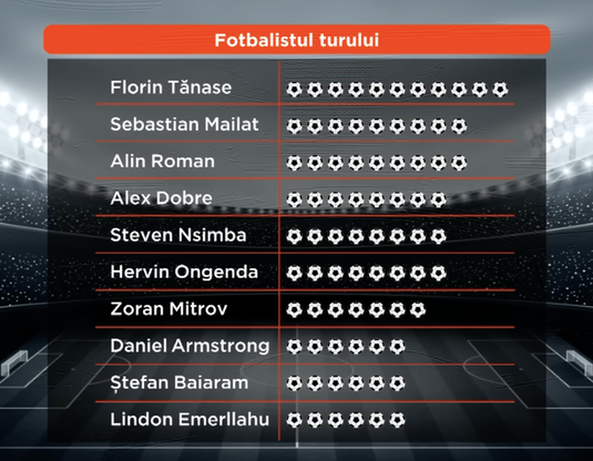 În direct, la Prima Sport, au fost prezentaţi jucătorii cu cele mai multe reuşite în turul sezonului regulat din Superligă.