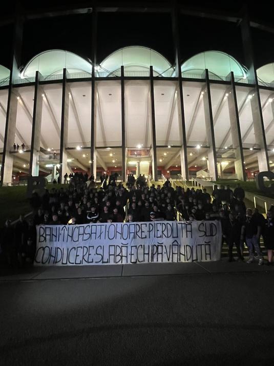 Suporterii giuleşteni n-au mai rezistat şi au plecat de la Arena Naţională. Vizibil supăraţi pe prestaţia favoriţilor din ultima perioadă au afişat şi un banner sugestiv în acest sens.