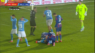 Momente dramatice au avut loc în ultimele minute ale meciului de la Voluntari. Alexandru Gîţ a suferit o accidentare gravă, după intrarea lui Răzvan Gunie, eliminat direct de central.