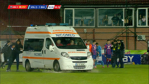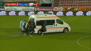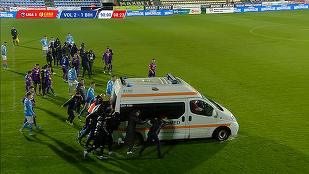 Fotbaliştii şi spectatorii şi-au pus mâinile în cap, în timp ce ambulanţa era împinsă spre jucătorul accidentat al lui FC Voluntari.