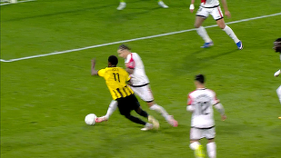 În minutul 34, Andrei Raţiu a încercat să joace mingea în propriul careu, dar l-a lovit pe Koita în zona picioarelor. Espen Eskas a dictat fault şi a indicat lovitură de la 11 metri pentru AEK.