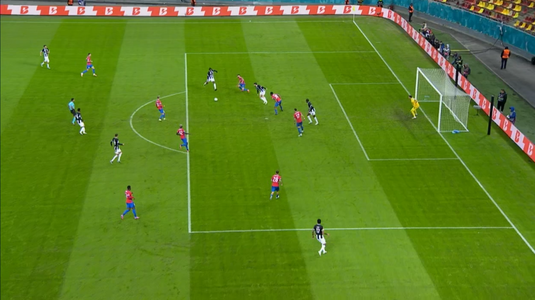 Min. 8: Ocazie FCSB! Alibec execută cornerul, iar Mihai Popescu apare foarte bine la bara a doua şi reia cu capul. Mingea trece puţin pe lângă poartă.