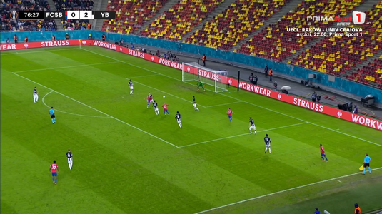 Min. 63: Ocazie Young Boys! Cordova se trezeşte singur în mijlocul careului FCSB şi reia balonul cu capul. Din fericire pentru roş-albaştri, mingea trece peste poartă.