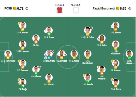 Notele din FCSB – Rapid: cine a fost cel mai mai bun de pe teren galerie foto