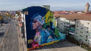 O pictură murală cu David Popovici, pe o clădire din Timişoara. Modul uluitor în care a fost reprezentat campionul olimpic şi mondial | FOTO