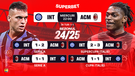 A cincea confruntare a sezonului dintre Inter şi AC Milan nu e doar un alt „Derby della Madonnina”, pentru că această partidă va trimite una dintre rivale la Roma, în finala Cupei Italiei. Live pe Superbet alături de sute de opţiuni la pariuri sportive!