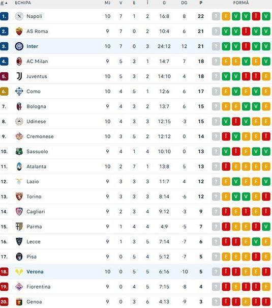 Cu această victorie, echipa lui Cristi Chivu a venit la un singur punct în spatele liderului Napoli, însă AS Roma poate trece pe prima poziţie în Serie A cu o victorie în meciul din această seară de la AC Milan.